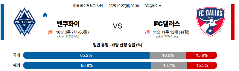 벤쿠버 대 댈러스 메이저리그사커 10월27일 맞대결 생중계, 스포츠중계, 스포츠분석