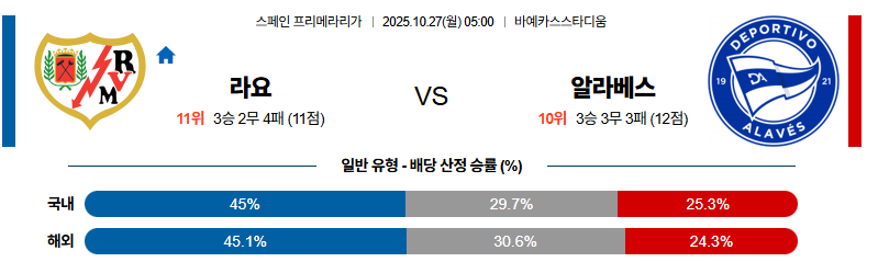 라요 대 알라베스 라리가 10월27일 맞대결 생중계, 스포츠중계, 스포츠분석