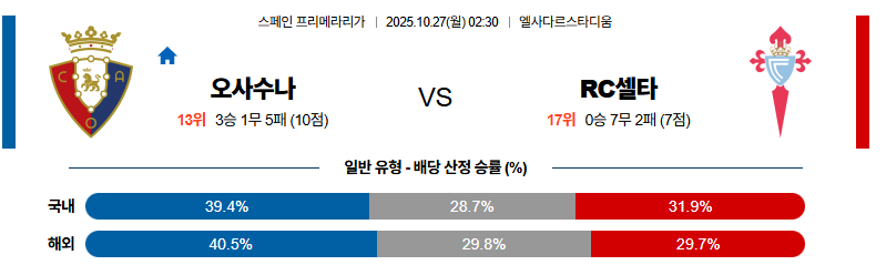 오사수나 대 셀타비고 라리가 10월27일 맞대결 생중계, 스포츠중계, 스포츠분석
