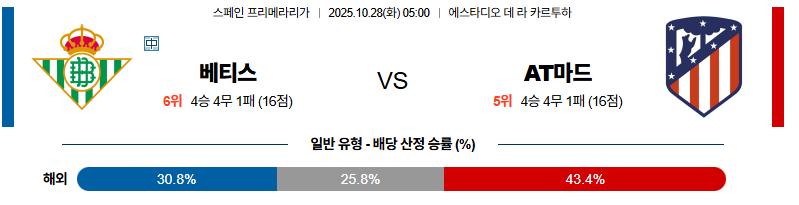 10월28일 베티스:AT마드리드 라리가 분석 및 예측 스포츠중계:스포츠무료중계