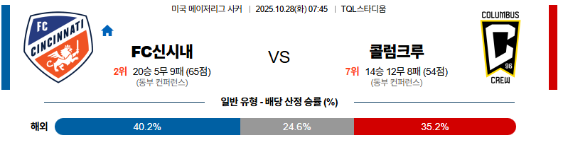 10월28일 신시내티:콜럼버스 메이저리그사커 분석 및 예측 스포츠중계:스포츠무료중계