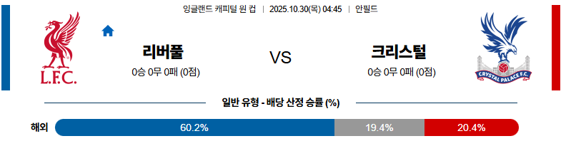10월30일 리버풀:크리스탈팰리스 잉글랜드캐피털원컵 분석 및 예측 스포츠중계:스포츠무료중계