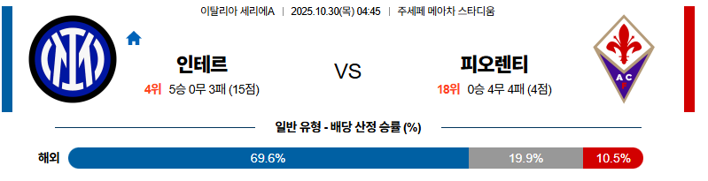 10월30일 인터밀란:피오렌티나 세리에A 분석 및 예측 스포츠중계:스포츠무료중계