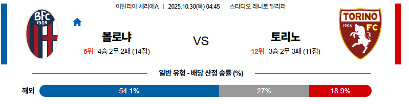 10월30일 볼로냐:토리노 세리에A 분석 및 예측 스포츠중계:스포츠무료중계