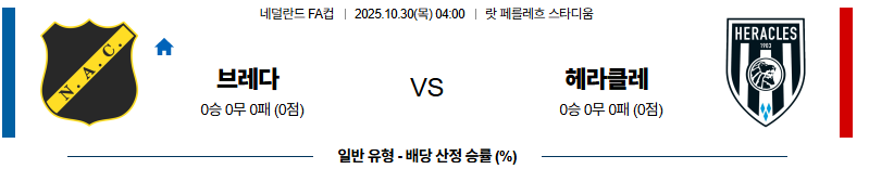 10월30일 브레다:헤라클레스 네덜란드FA컵 분석 및 예측 스포츠중계:스포츠무료중계