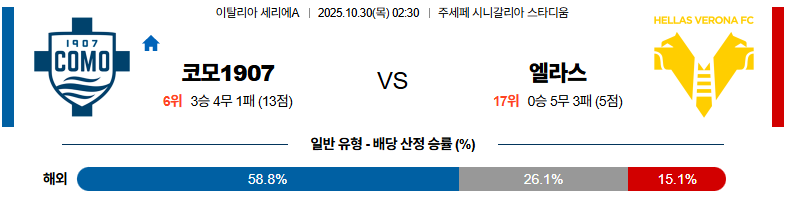 10월30일 코모:베로나 세리에A 분석 및 예측 스포츠중계:스포츠무료중계
