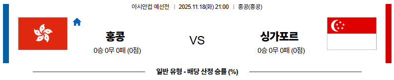 11월18일 홍콩:싱가포르 아시안컵예선전 분석 및 예측 스포츠중계:스포츠무료중계
