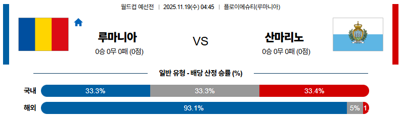 11월19일 루마니아:산마리노 월드컵예선전 분석 및 예측 스포츠중계:스포츠무료중계
