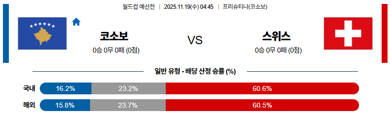 11월19일 코소보:스위스 월드컵예선전 분석 및 예측 스포츠중계:스포츠무료중계