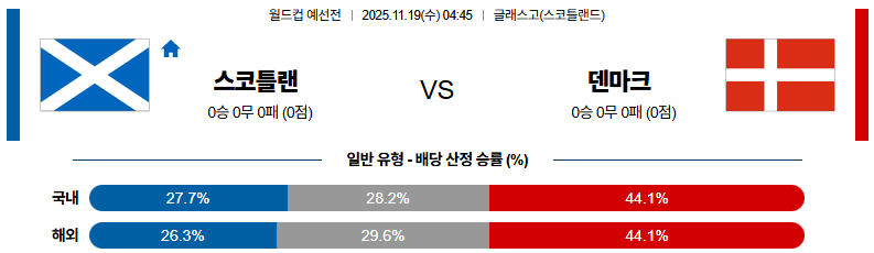 11월19일 스코틀랜드:덴마크 월드컵예선전 분석 및 예측 스포츠중계:스포츠무료중계