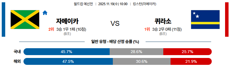 11월19일 자메이카:퀴라소 월드컵예선전 분석 및 예측 스포츠중계:스포츠무료중계