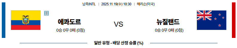11월19일 에콰도르:뉴질랜드 남축INTL 분석 및 예측 스포츠중계:스포츠무료중계