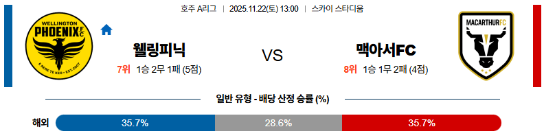 11월22일 웰링턴피닉스:맥아서FC 호주A리그 분석 및 예측 스포츠중계:스포츠무료중계