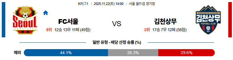 11월22일 FC서울:김천 K리그1 분석 및 예측 스포츠중계:스포츠무료중계