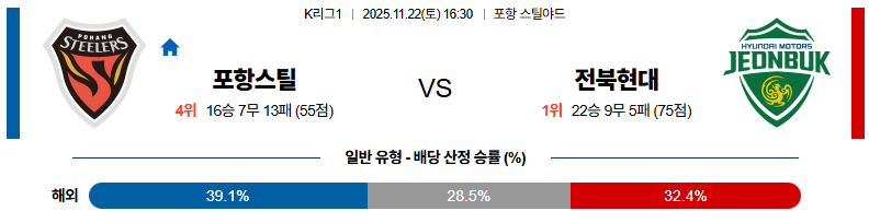 11월22일 포항:전북 K리그1 분석 및 예측 스포츠중계:스포츠무료중계