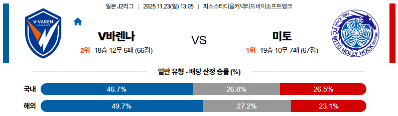 11월23일 V-바렌:미토 J리그2 분석 및 예측 스포츠중계:스포츠무료중계