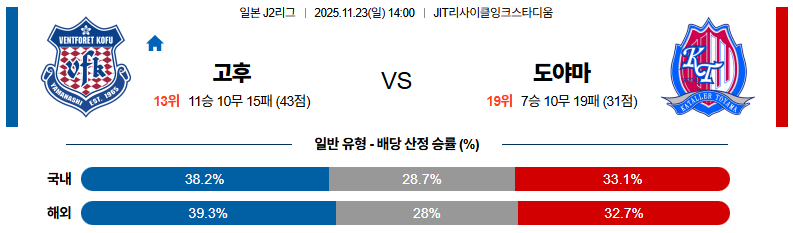 11월23일 반포레고후:도야마 J리그2 분석 및 예측 스포츠중계:스포츠무료중계