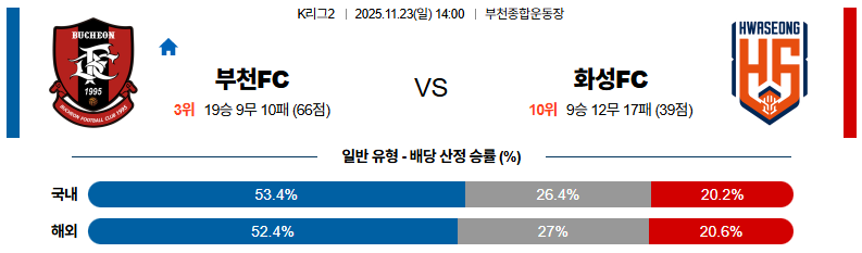 11월23일 부천:화성 K리그2 분석 및 예측 스포츠중계:스포츠무료중계