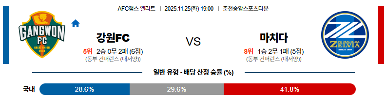 11월25일 강원FC:마치다 AFC챔피언스리그 분석 및 예측 스포츠중계:스포츠무료중계