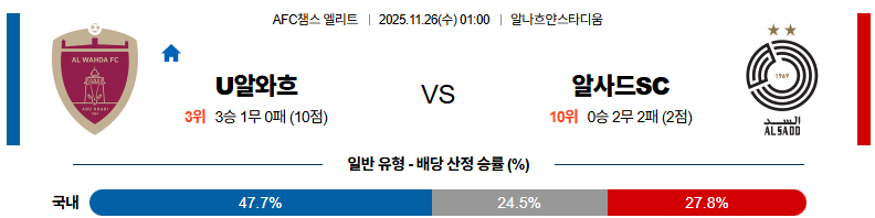 11월26일 알와흐다:알사드 AFC챔피언스리그 분석 및 예측 스포츠중계:스포츠무료중계