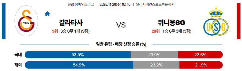 11월26일 갈라타사라이:위니옹 UEFA챔피언스리그 분석 및 예측 스포츠중계:스포츠무료중계