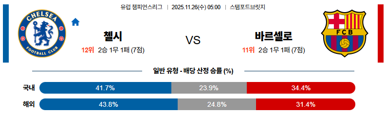 11월26일 첼시:바르셀로나 UEFA챔피언스리그 분석 및 예측 스포츠중계:스포츠무료중계