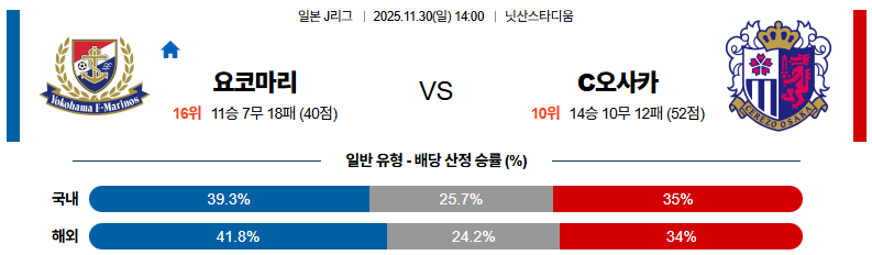11월30일 요코하마마리노스:세레소오사카 J리그1 분석 및 예측 스포츠중계:스포츠무료중계