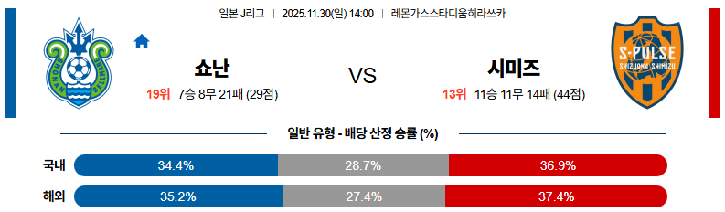 11월30일 쇼난:시미즈 J리그1 분석 및 예측 스포츠중계:스포츠무료중계