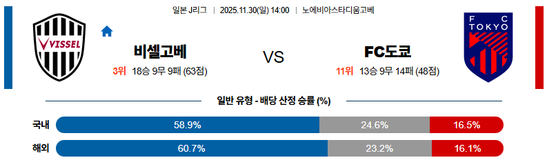 11월30일 비셀고베:FC도쿄 J리그1 분석 및 예측 스포츠중계:스포츠무료중계