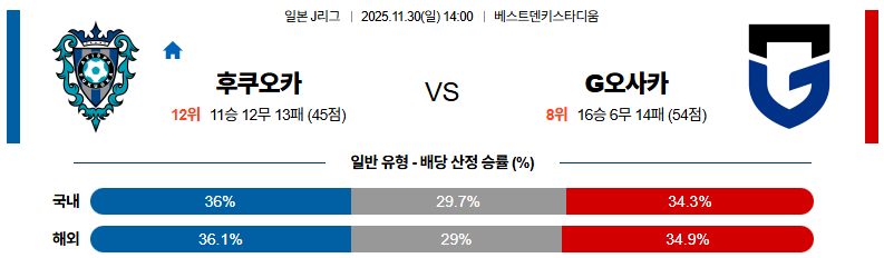 11월30일 후쿠오카:감바오사카 J리그1 분석 및 예측 스포츠중계:스포츠무료중계