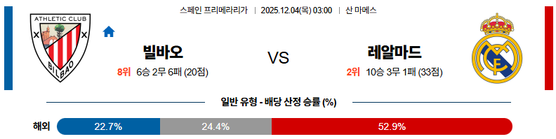 아틀레틱빌바오 대 레알마드리드 라리가 12월04일 맞대결 생중계, 스포츠중계, 스포츠분석