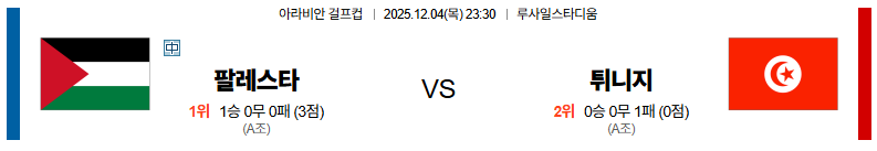 팔레스타인 대 튀니지 걸프컵 12월04일 맞대결 생중계, 스포츠중계, 스포츠분석