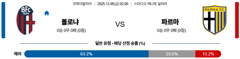 볼로냐 대 파르마 코파이탈리아 12월05일 맞대결 생중계, 스포츠중계, 스포츠분석