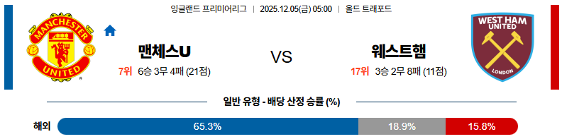맨체스터유나이티드 대 웨스트햄 프리미어리그 12월05일 맞대결 생중계, 스포츠중계, 스포츠분석
