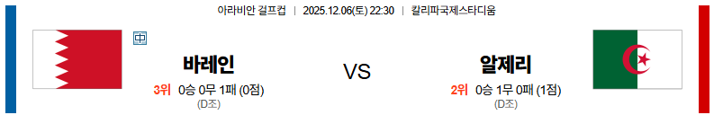 바레인 대 알제리 걸프컵 12월06일 맞대결 생중계, 스포츠중계, 스포츠분석
