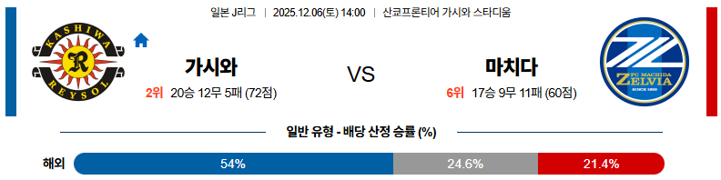 가시와 대 마치다 J리그1 12월06일 맞대결 생중계, 스포츠중계, 스포츠분석
