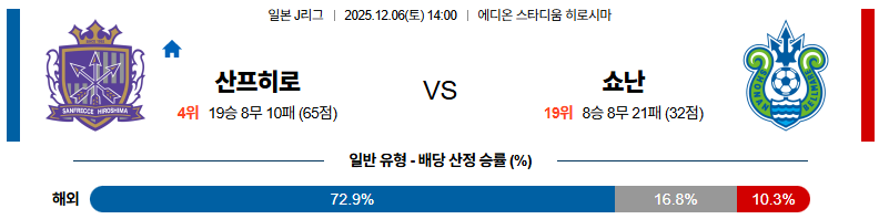 산프레체히로시마 대 쇼난 J리그1 12월06일 맞대결 생중계, 스포츠중계, 스포츠분석