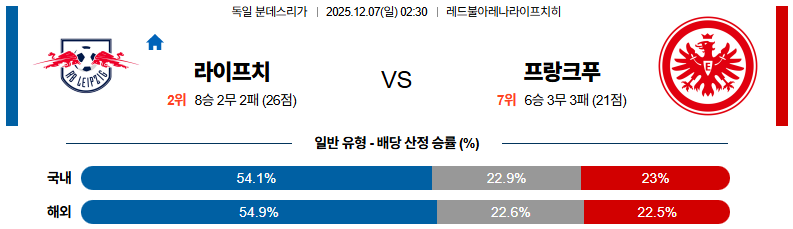 라이프치히 대 프랑크푸르트 분데스리가 12월07일 맞대결 생중계, 스포츠중계, 스포츠분석