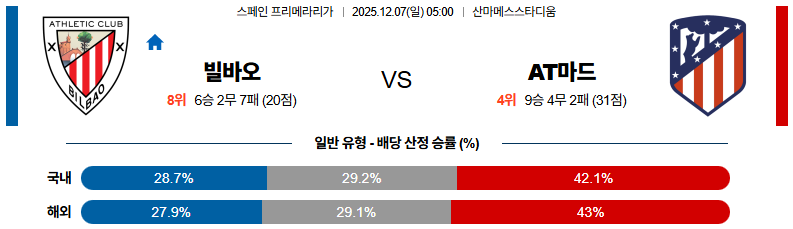 아틀레틱빌바오 대 AT마드리드 라리가 12월07일 맞대결 생중계, 스포츠중계, 스포츠분석