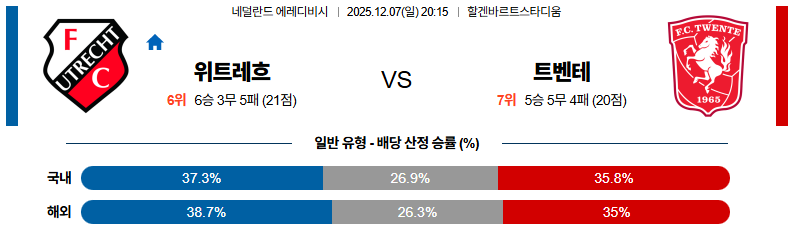 위트레흐트 대 트벤테 에레디비지 12월07일 맞대결 생중계, 스포츠중계, 스포츠분석