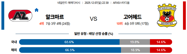 알크마르 대 고어헤드이글스 에레디비지 12월07일 맞대결 생중계, 스포츠중계, 스포츠분석