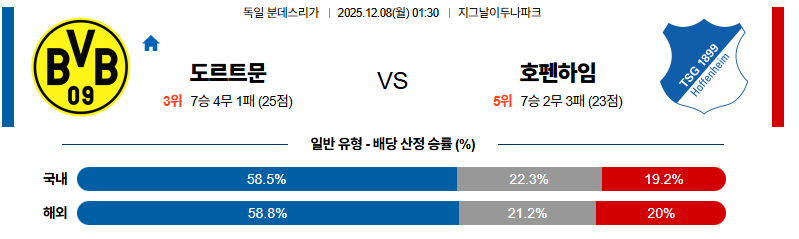 도르트문트 대 호펜하임 분데스리가 12월08일 맞대결 생중계, 스포츠중계, 스포츠분석