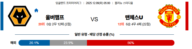 울버햄튼 대 맨유 프리미어리그 12월09일 맞대결 생중계, 스포츠중계, 스포츠분석