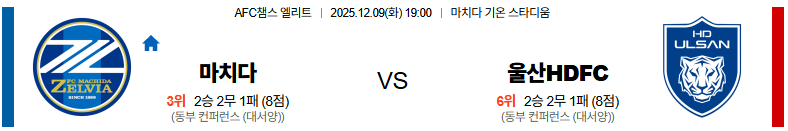 마치다 대 울산HD AFC챔피언스리그 12월09일 맞대결 생중계, 스포츠중계, 스포츠분석