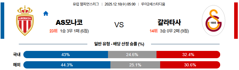 AS모나코 대 갈라타사라이 UEFA챔피언스리그 12월10일 맞대결 생중계, 스포츠중계, 스포츠분석