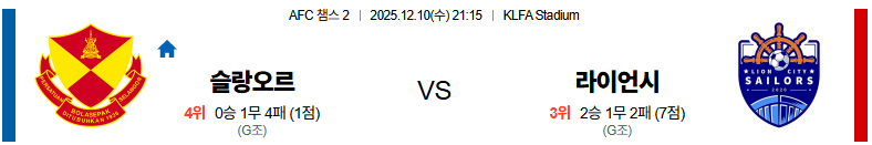 슬랑오르 대 라이언시티 AFC챔피언스리그2 12월10일 맞대결 생중계, 스포츠중계, 스포츠분석
