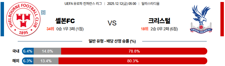 승: 크리스탈 팰리스 패: 쉘본 핸디: 크리스탈 팰리스 언더오버: 오버
