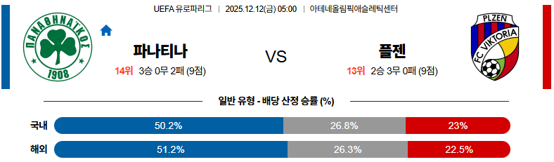 파나시나이코스 대 빅토리아플젠 UEFA유로파리그 12월12일 맞대결 생중계, 스포츠중계, 스포츠분석