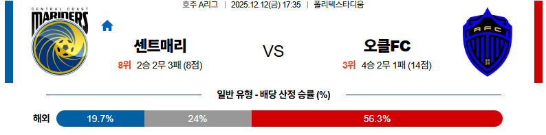 센트럴코스트 대 오클랜드FC 호주A리그 12월12일 맞대결 생중계, 스포츠중계, 스포츠분석