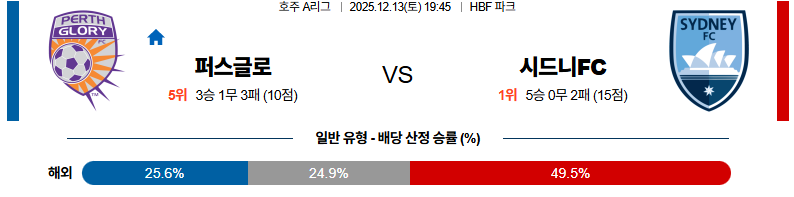 퍼스글로리 대 시드니FC 호주A리그 12월13일 맞대결 생중계, 스포츠중계, 스포츠분석